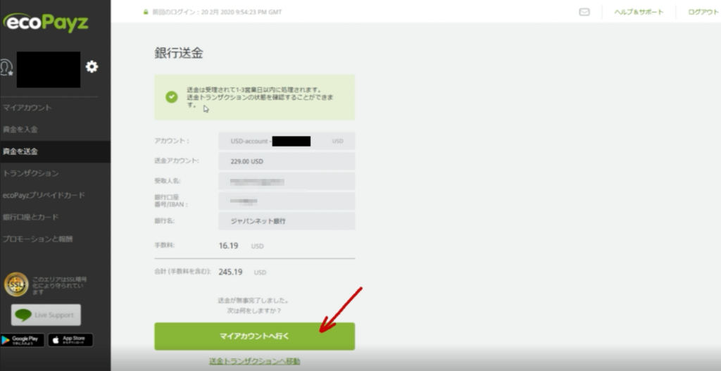 大体エコペイズからの入金は2営業日をみとけば入金されます!ほんとに入金されるの?って思ってる人は安心して下さい、わたしは今まで何度もエコペイズから出金してます。